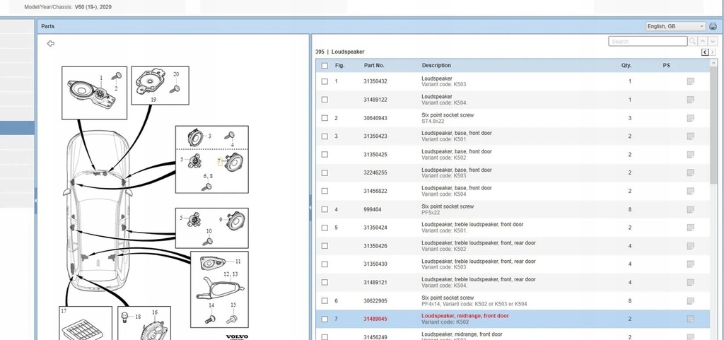 SKU: BPR29684 Código de la pieza: 31489045 Número VIN: Posición de montaje: -Modelo: V60 Tipo de carrocería: Kombi Año de producción: 2020 Cilindrada del motor: 2,0 L Caja de cambios: Mecánica Volante: Lado izquierdo