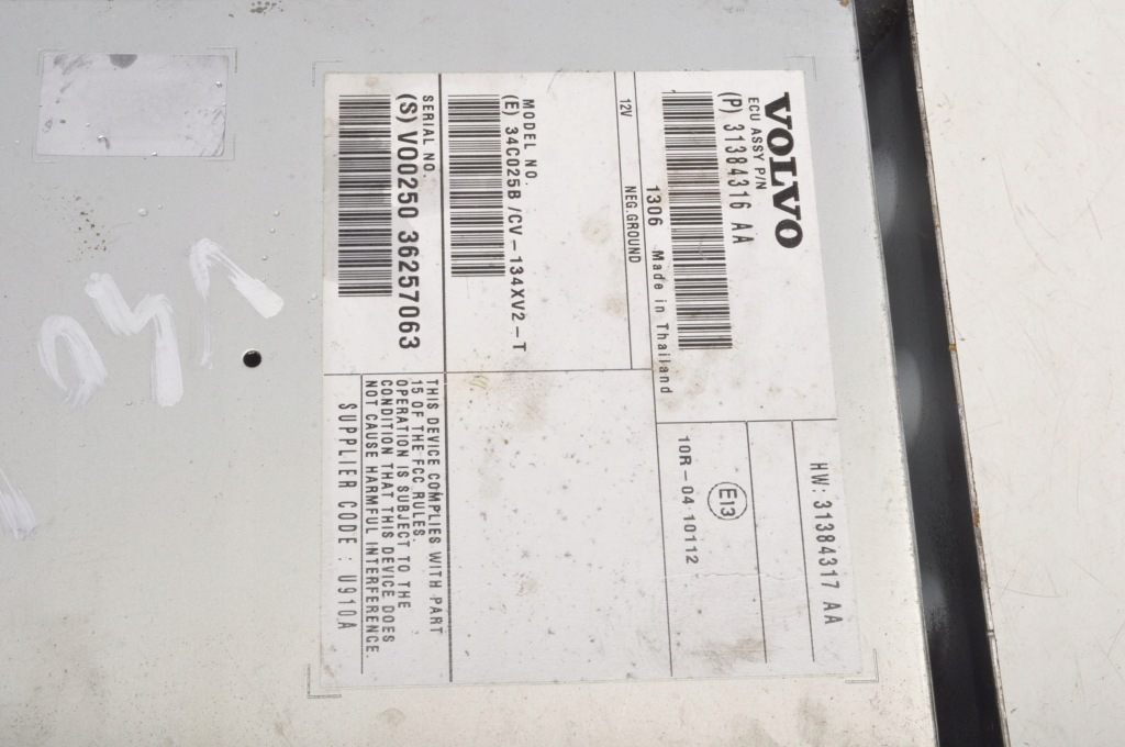 NOMBRE RADIO AMPLIFICADOR NO. DE FÁBRICA 31384316AA MARCA VOLVO MODELO V40 II CUERPO DEL MOTOR NÚMERO DE PUERTAS SUBMODELOS CAPACIDAD DEL MOTOR 0.0 TIPO DE TRANSMISIÓN: Manual TIPO DE COMBUSTIBLE CÓDIGO DEL MOTOR AÑO DE PRODUCCIÓN AÑOS DE PRODUCCIÓN CÓDIGO DE COLOR COLOR ID DE PARTE: ID: 1 92313