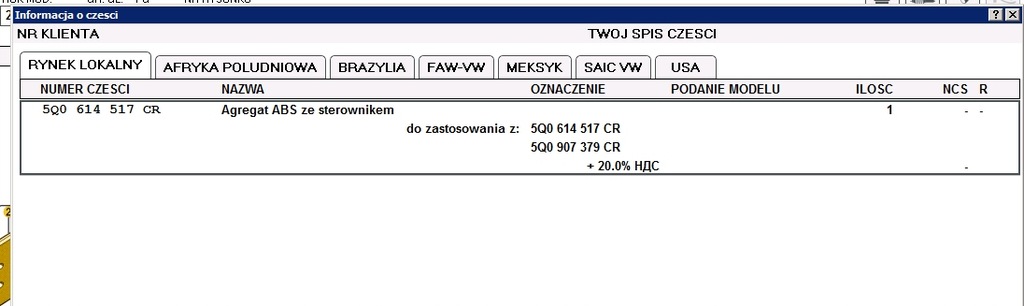 | Calidad de la pieza (según GVO) | O - original con el logotipo del fabricante del vehículo ( OE) |