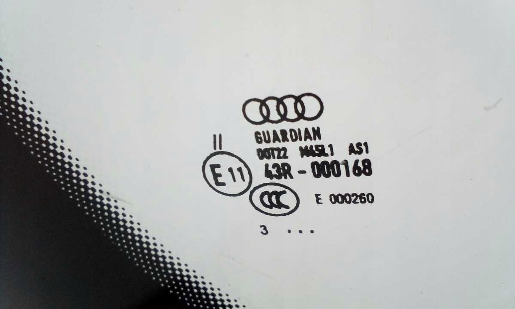 VENTANA ORIGINAL CON LOGO DE AUDI, AÑO EN LA VENTANA 3.