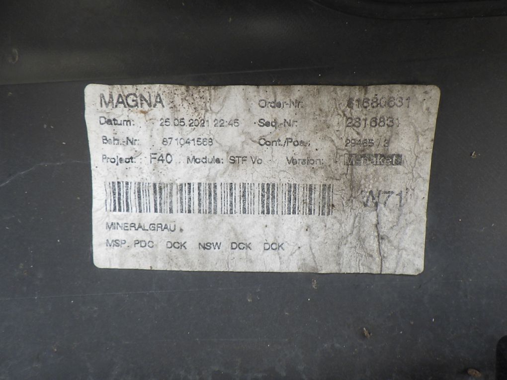| Calidad de la pieza (según GVO) | O - original con el logotipo del fabricante del vehículo (OE) |