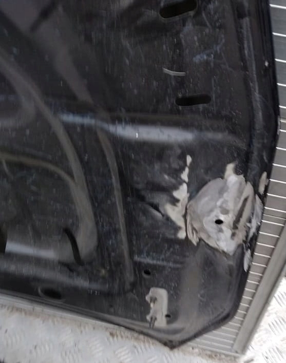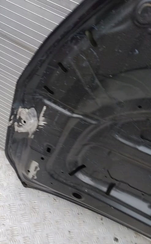 Máscara usada, ligeramente rayada, abolladuras visibles, soldada desde el interior.