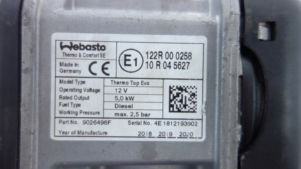 CALENTADOR DE ESTACIONAMIENTO WEBASTO 122R000258