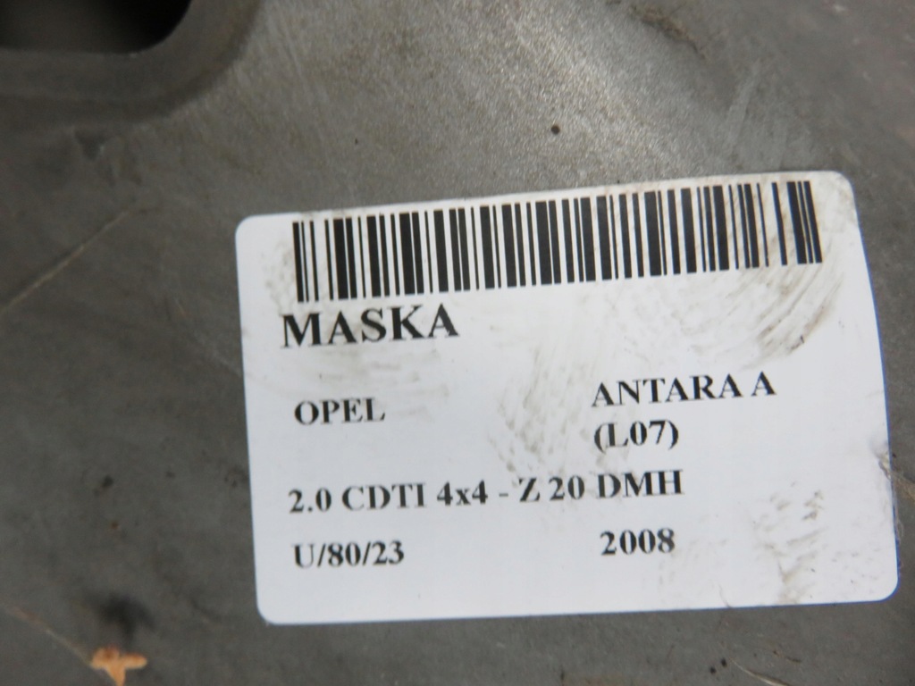 MASKOPELANTARA A (L07)20082.0 CDTI 4x4 - Z 20 DMHSUV Número de puertas: 5 Caja de cambios: AUTOMÁTICA 5 VELOCIDADES 4X4 Número de serie: ID pieza: K935935