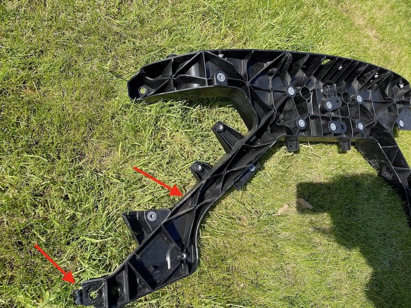 // UN PIEZA DE PLÁSTICO ROTO EN DOS LUGARES // MARCADO CON UNA FLECHA