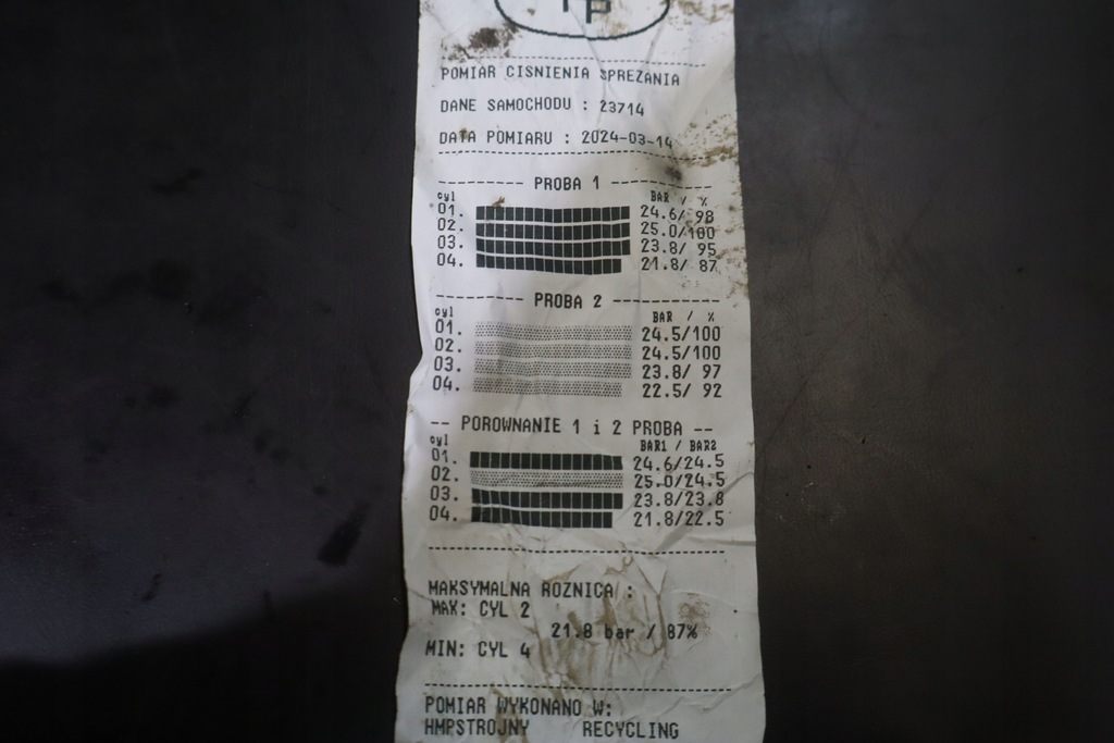 El motor ha sido arrancado y la prueba de compresión ha sido revisada y está incluida en la foto.