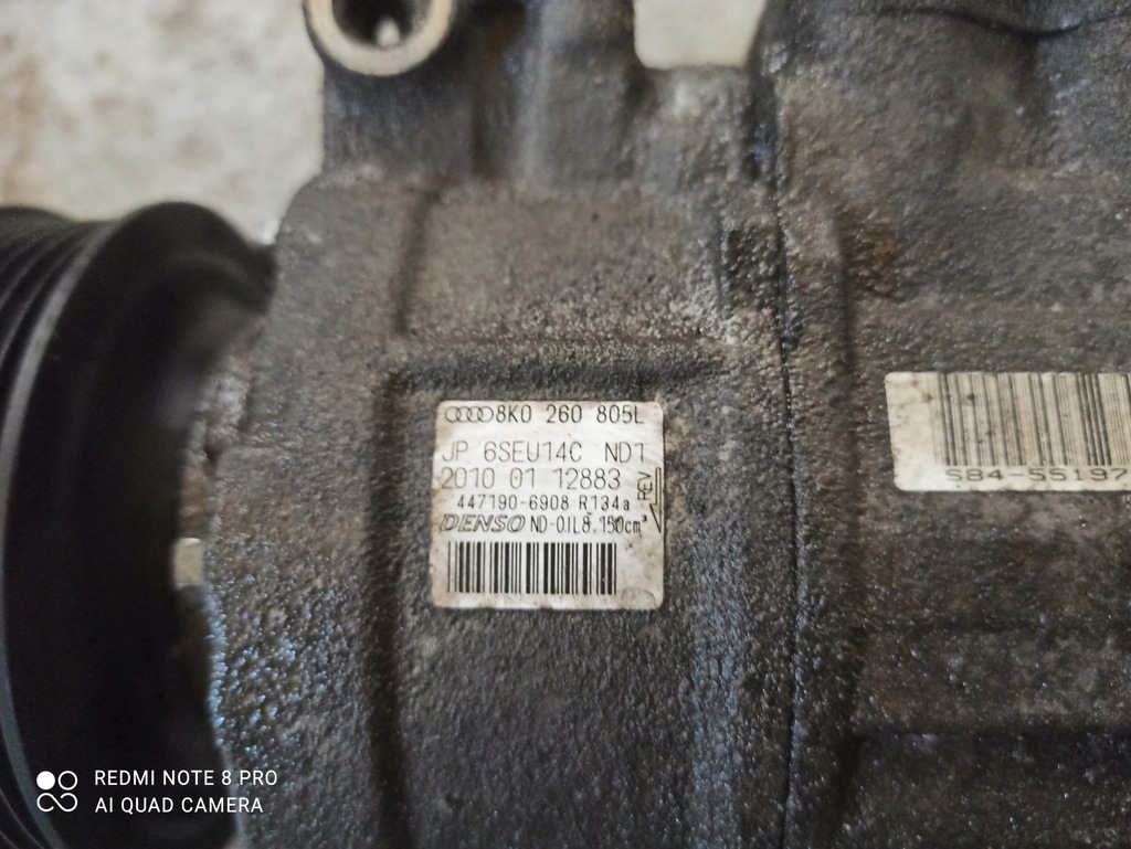 Compresor de aire acondicionado desmontado de un Audi A4 B8 2010, 2.0 Tdi 170 CV, marcado CAHA, pintura LX7V Kombi Quattro, kilometraje 160.000 km.