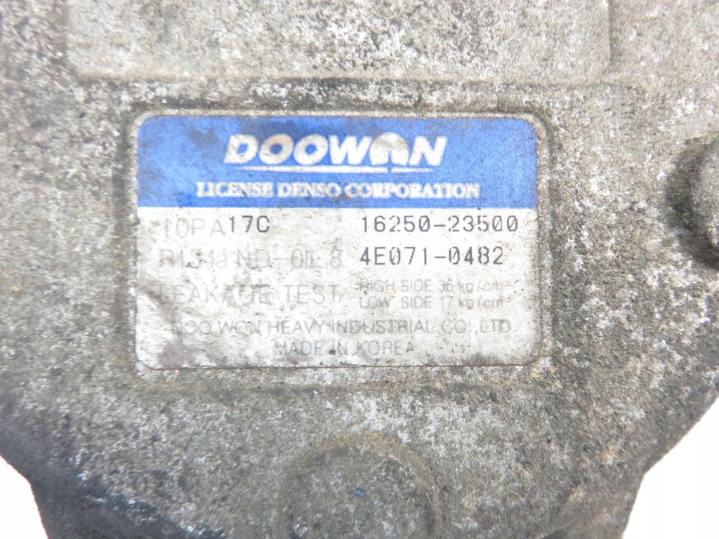 COMPRESOR DE AIRE ACONDICIONADOKIASORENTO I (JC) 20052.5 CRDi - D4CBDIESLASUVI Número de puertas: 5 Caja de cambios: MANUAL DE 5 VELOCIDADES Número de serie: 1625023500 ; 4E0710482 ID de pieza: M926809