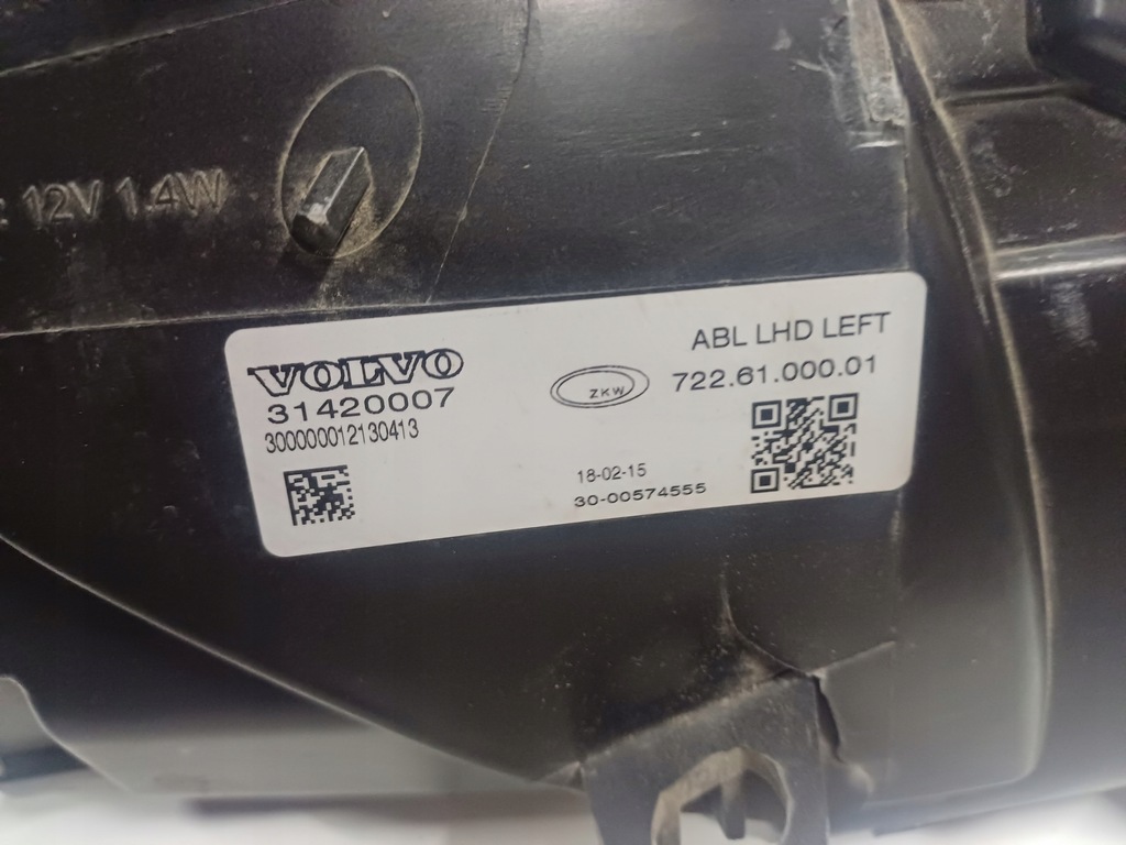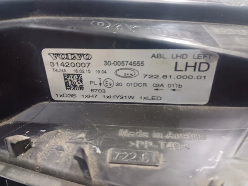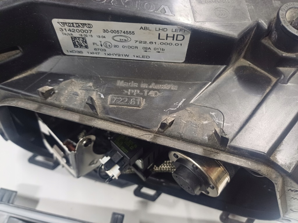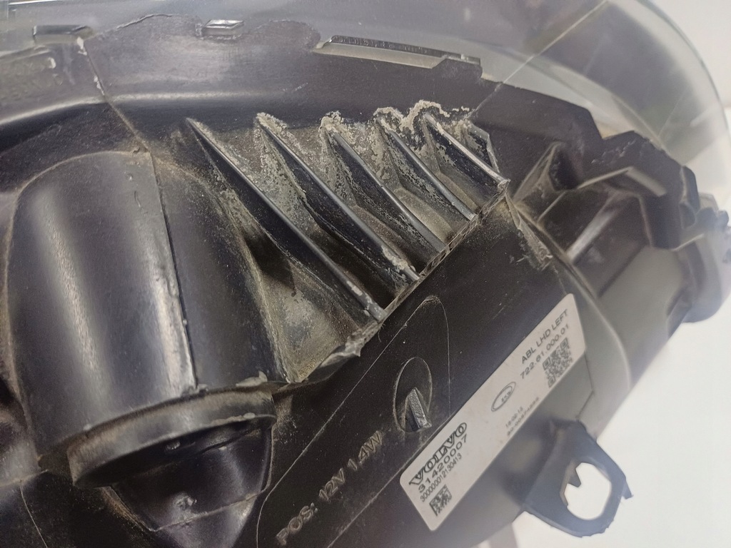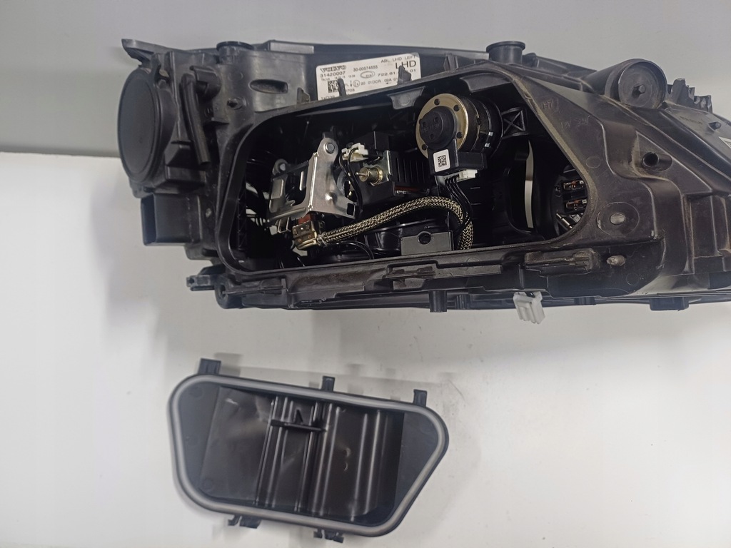 Faro delantero izquierdo original usado en versión europea para el VOLVO V40 II, foto real, faltan dos manijas, la tercera rota, un pequeño agujero en la lata, pasadores de tapa dañados, vidrio con leves rayones y desconchones, falta filamento y convertidor