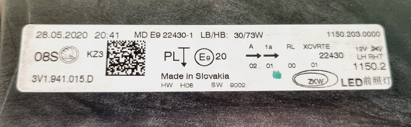 | Número de pieza | 3V1941015D SKODA OE |