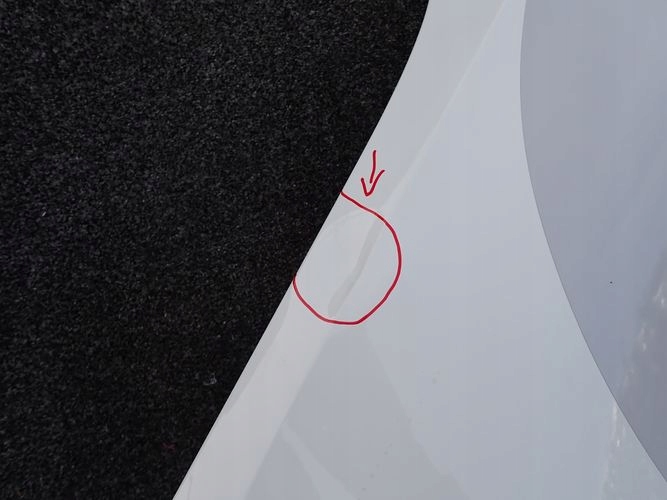 El guardabarros está dañado en el lugar marcado.