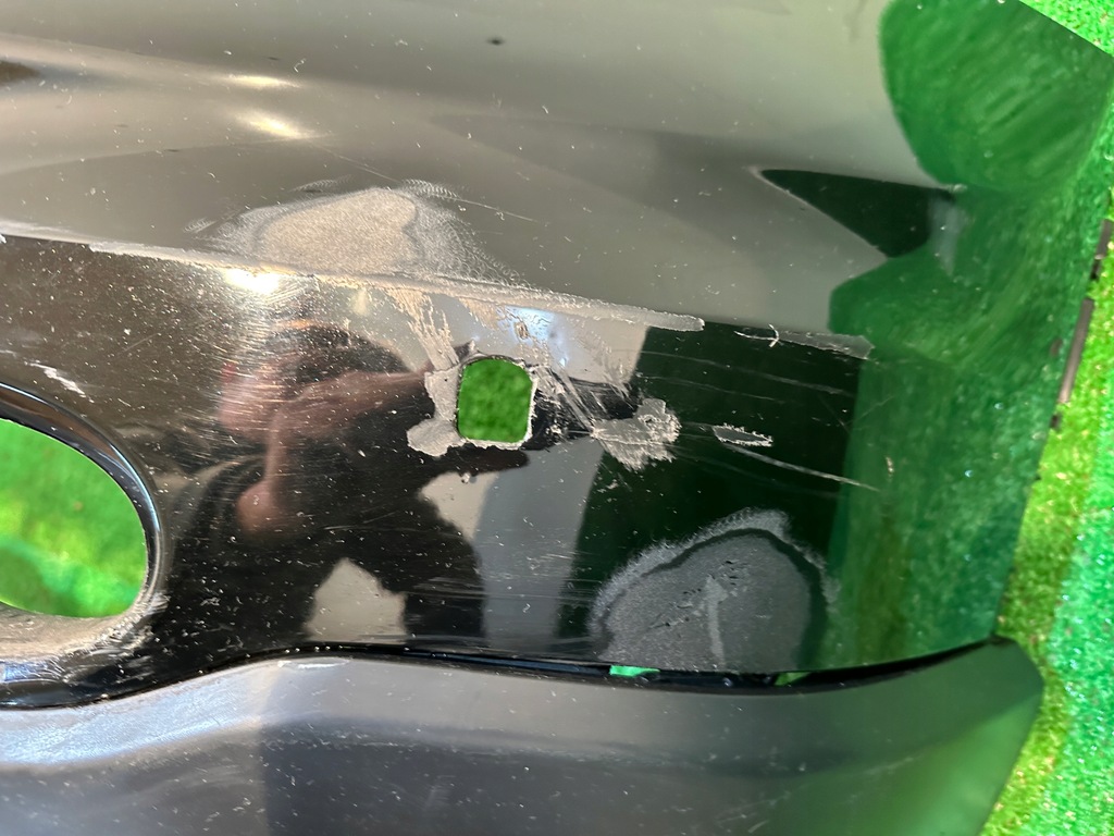 El parachoques está desgastado y reparado en los lugares visibles en las fotos. Dos ojales de sujeción reparados como en la foto. Requiere relacado.