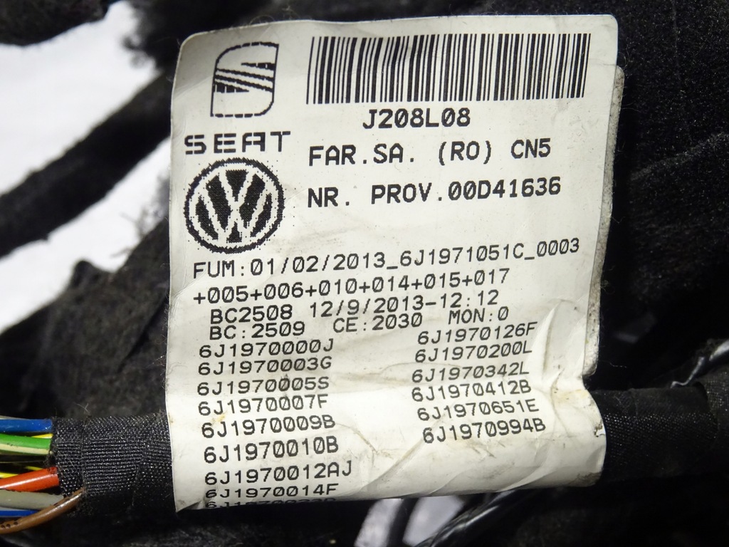 | Número de pieza | INSTALACIÓN DEL ARNÉS SEAT IBIZA IV 4 6J0 LIFT 1.6 TDI CAYB 6J1971051C |