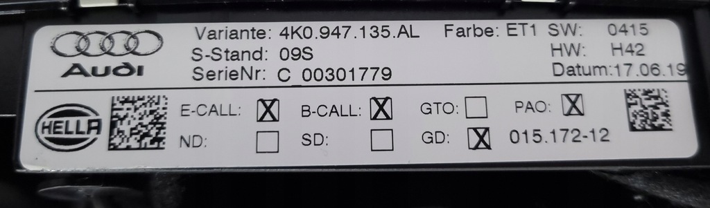 | Catálogo de piezas número | 4K0947135AL ET1 |