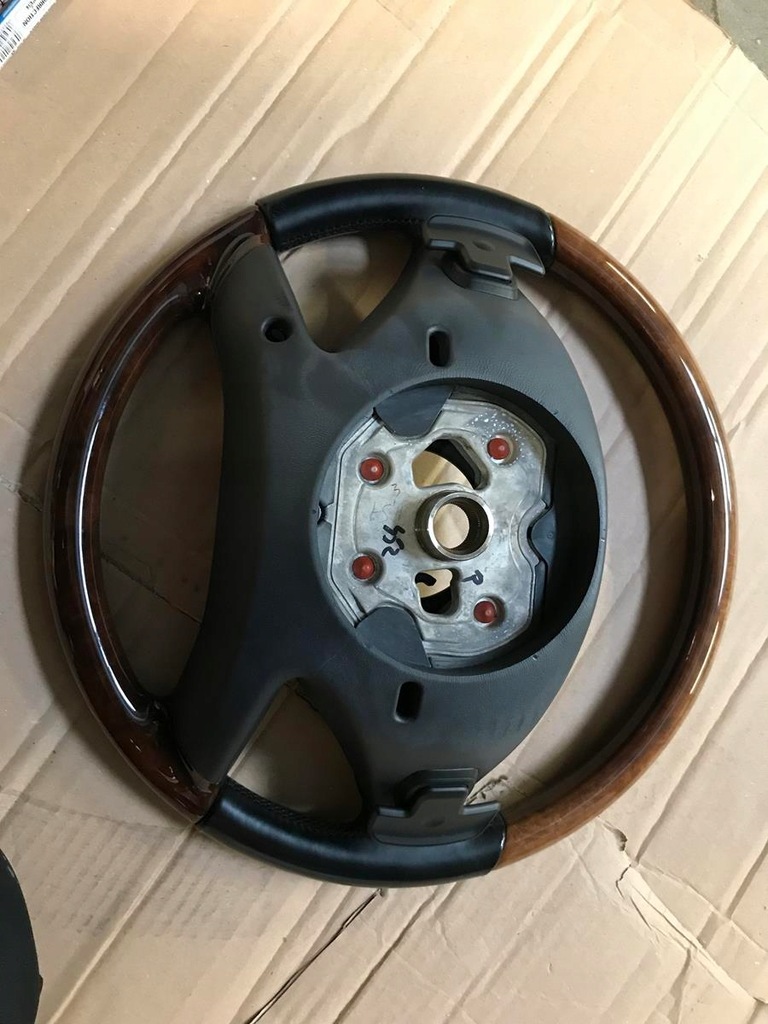 La subasta se refiere al volante de cuero y madera del Mercedes W221 / W216 LIFT visible en la foto. El volante está en muy buen estado, la madera no está agrietada ni rayada y el cuero también está en buen estado.