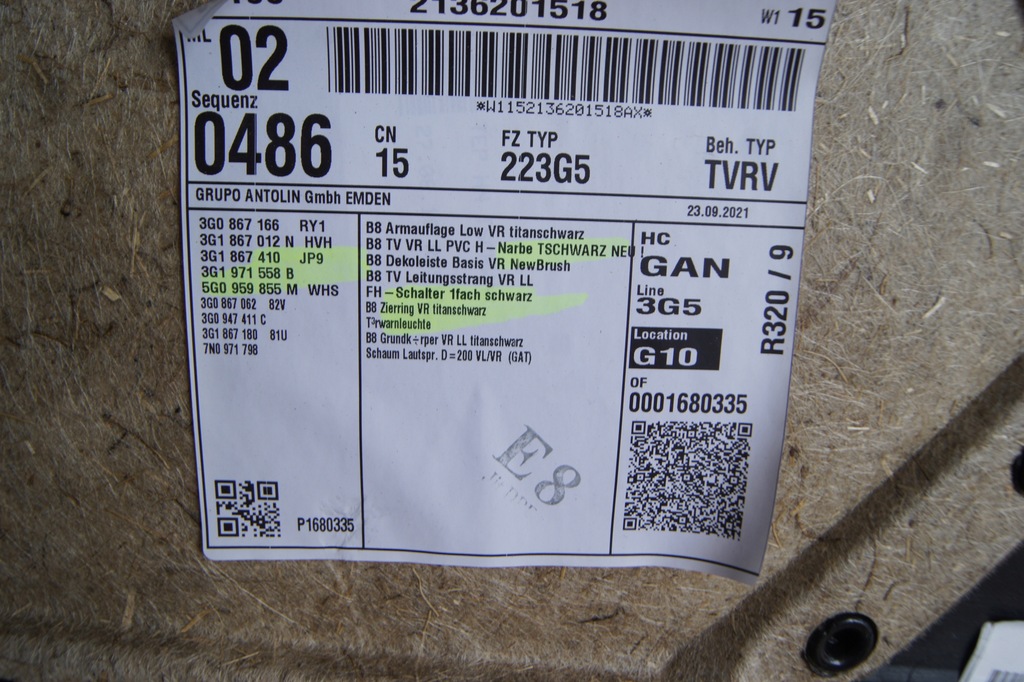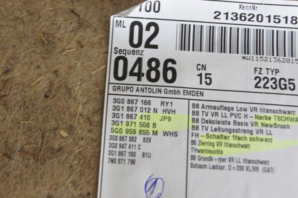 | Número de pieza | 3G1867012N |