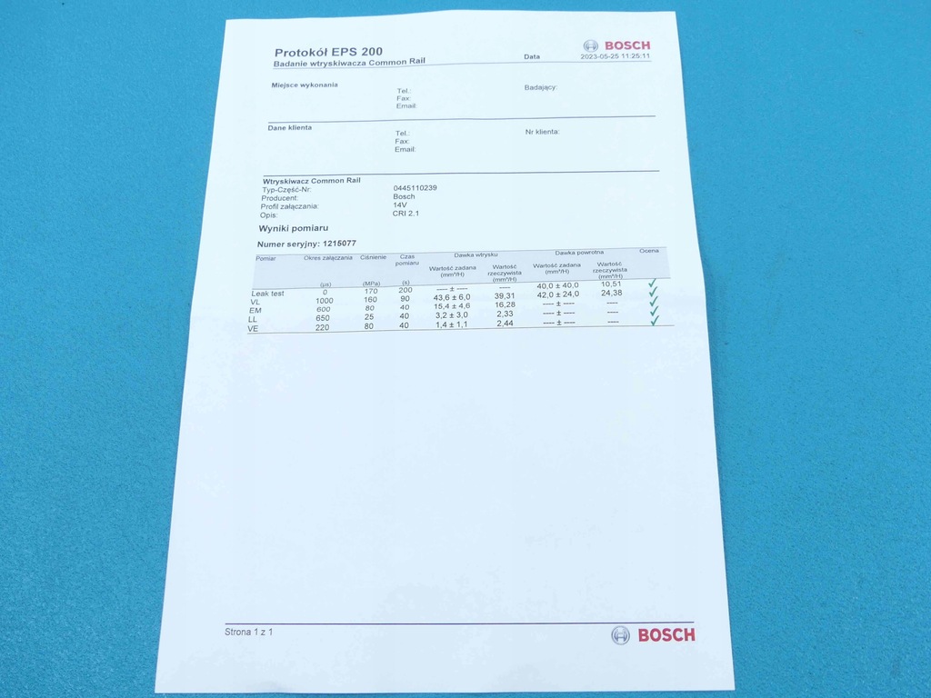 Marca Modelo: Peugeot Partner Número de VIN del vehículo: VF3GB9HWC96283028 Año de producción. Vehículo 2007. Descripción del vehículo: 1.6 hdi 75KM HB 5d caja de cambios manual - versión europea. Información adicional: Limpiado y probado en el dispositivo BOSCH EPS 205