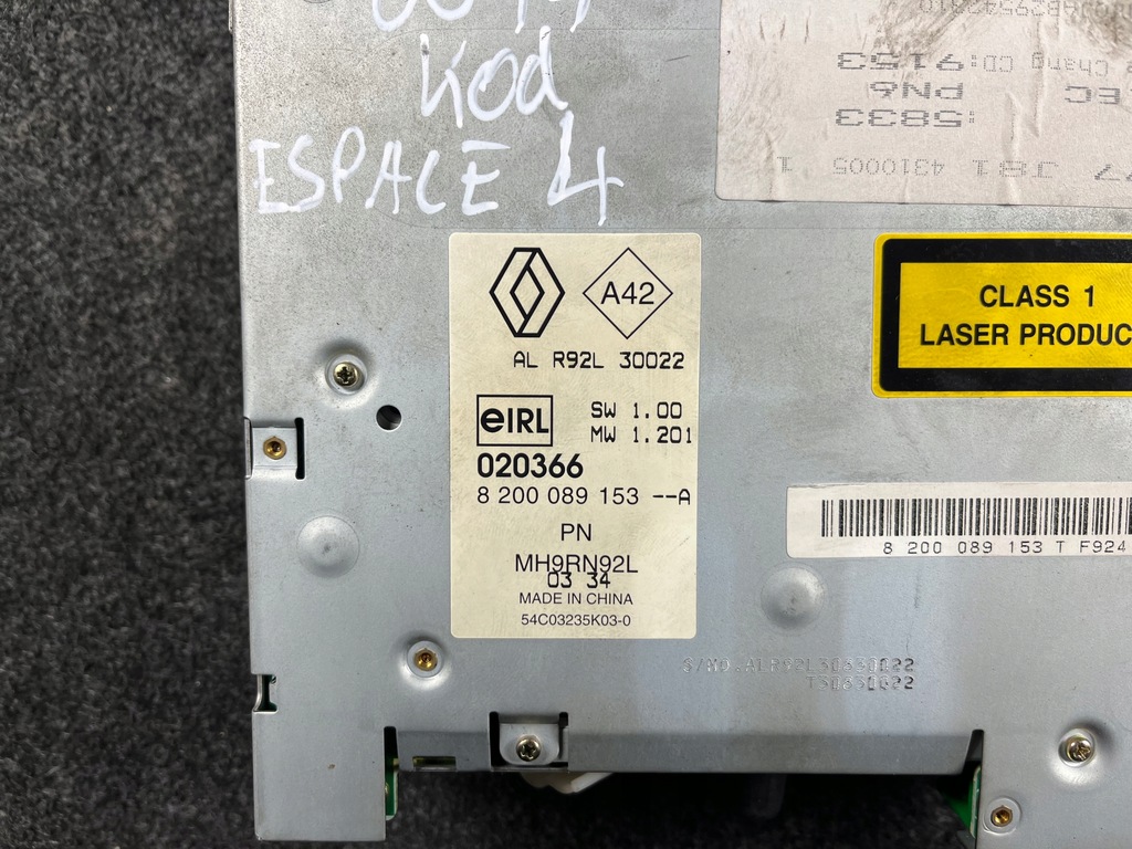 Número de pieza renault espace IV radio de fábrica Cabasse + código 8200089153A