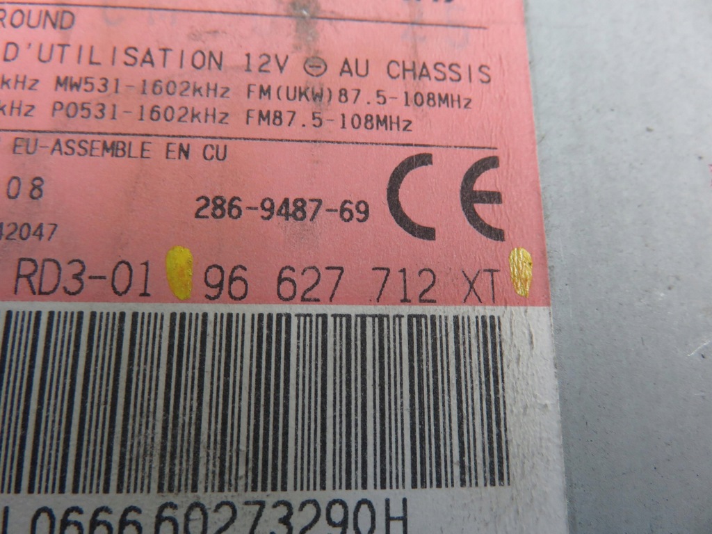 RADIO CDPEUGEOT206 liftback (2A/C)20071.4 HDi eco 70 - 8HZ (DV4TD)DIESLAHB Número de puertas: 5Caja de cambios: 5 VELOCIDADES MANUAL Número de serie: 96627712XT Código: M894907