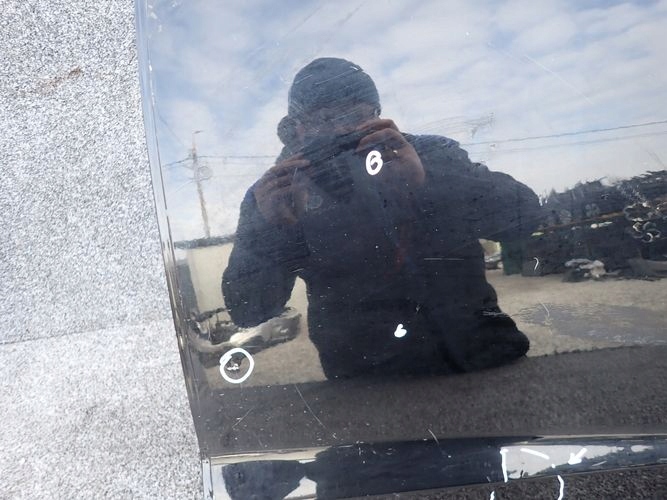 La puerta está dañada en el lugar marcado.