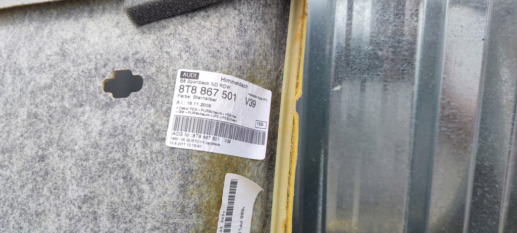 | Número de pieza | TABLANCO AUDI A5 8T SPORTBACK 8T8867501 V39 |
