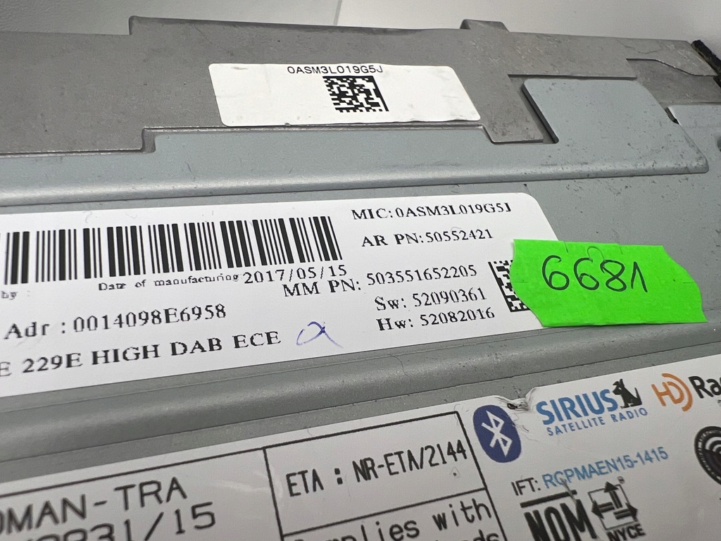 | Numéro de pièce | Alfa Romeo Stelvio navigation 50552421 |