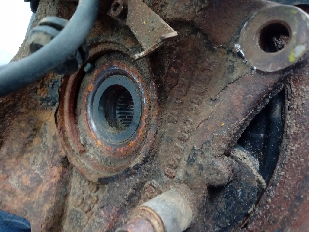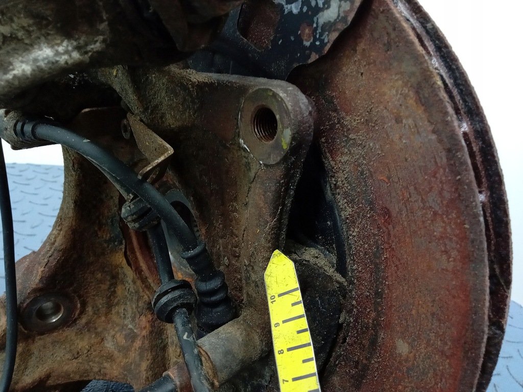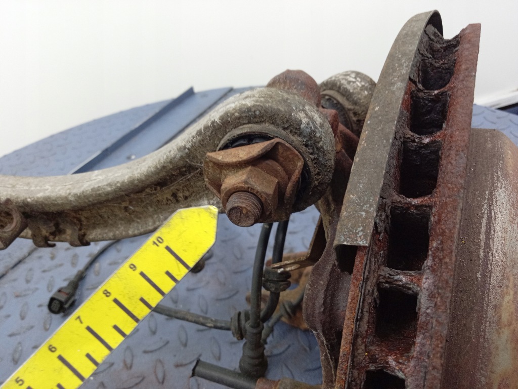 Description : Capteur ABS, moyeu, triangles de suspension, disque de frein, disque d'ancrage, signes visibles de la corrosion, - qualité B && AUDI Q7 4L 4.2 TDI Fusée ARRIÈRE GAUCHE 7L8505435