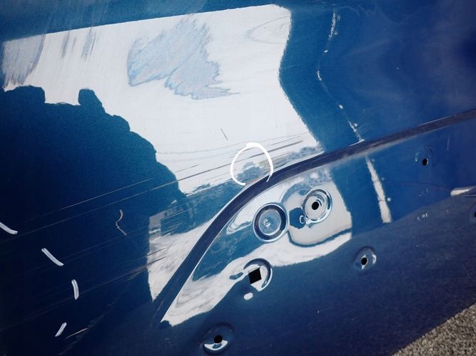 La porte est endommagée à l'endroit marqué