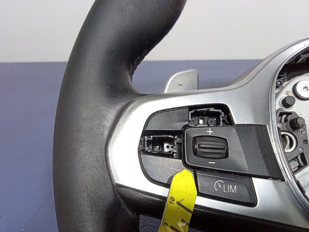 Description : volant du pack M, à trois branches, avec des palettes de cuir, avec multifonction, chauffant, traces d'utilisation visibles, il manque deux boutons - qualité B && BMW 5 G30 G31 VOLANT MULTIFONCTION PALETTES EN CUIR M-PACKAGE