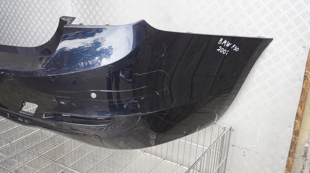 Pièce à vendre : Pare-chocs arrière pour BMW F30. Nous évaluons l'état sur la base des photos - des traces normales d'utilisation sous forme de rayures sont visibles. Pare-chocs à peindre, numéro de catalogue 7276716. Les pièces sont fabriquées par BMW OE. Convient aux voitures particulières. De plus, il comporte des trous pour les capteurs de stationnement. La qualité des pièces est originale avec le logo du constructeur (OEM, OES). La surface du pare-chocs est peinte.