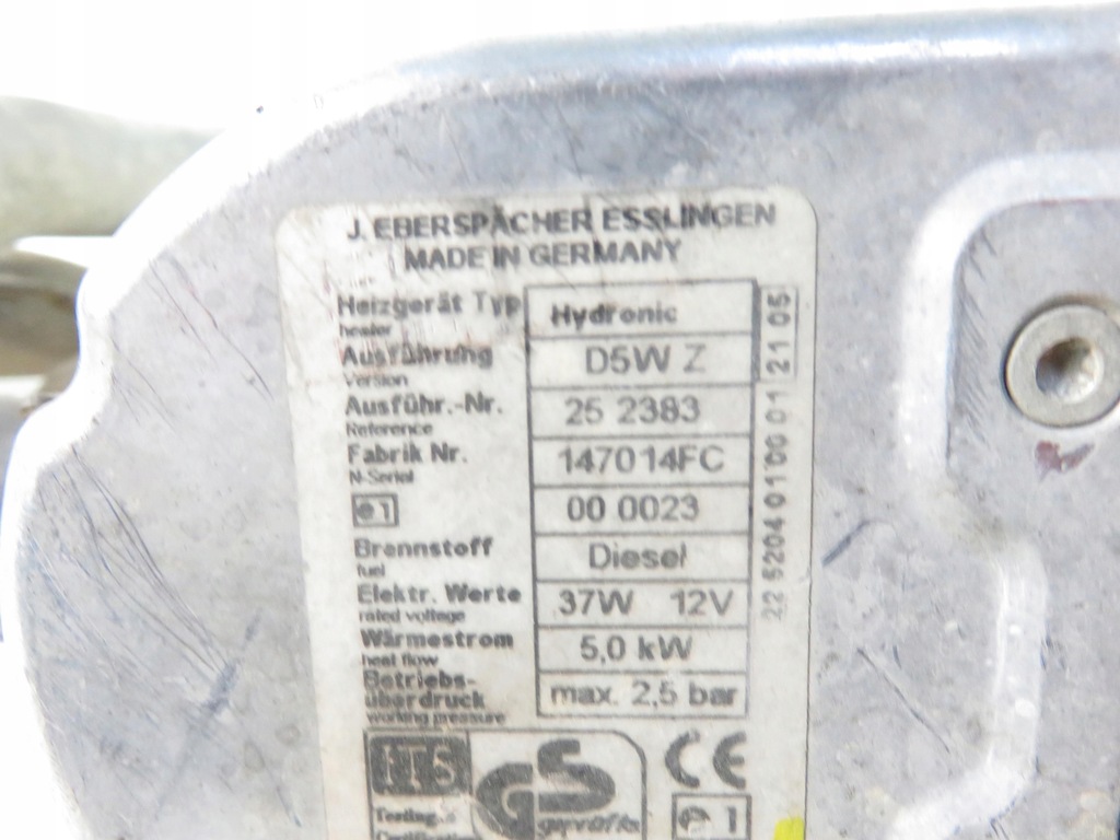 DIESEL, SANS POMPE, TUYAUX FLEXIBLES SUR BANDE, SANS CONTROLEUR, CONNECTEUR: 6 BROCHES, AVEC SILENCIEUX