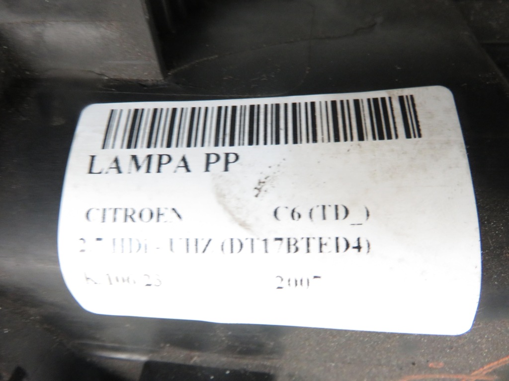 LAMPE PPCITROENC6 (TD_)20072.7 HDi - UHZ (DT17BTED4)DIESELFASTBACKNombre de portes : 4Boîte de vitesses : AUTOMATIQUE 6 VITESSES Numéro de série : 1307022565 ID pièce : M933306