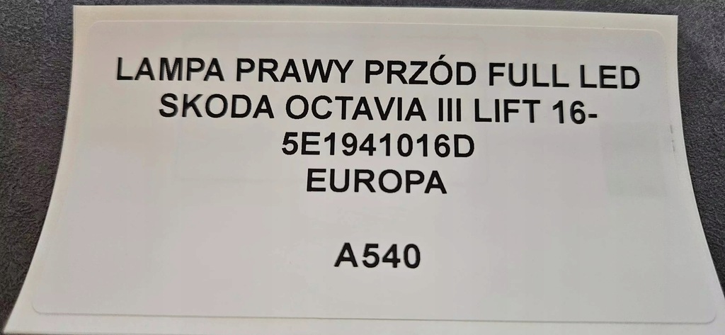 FEU AVANT DROIT FULL LED SKODA OCTAVIA III LIFT