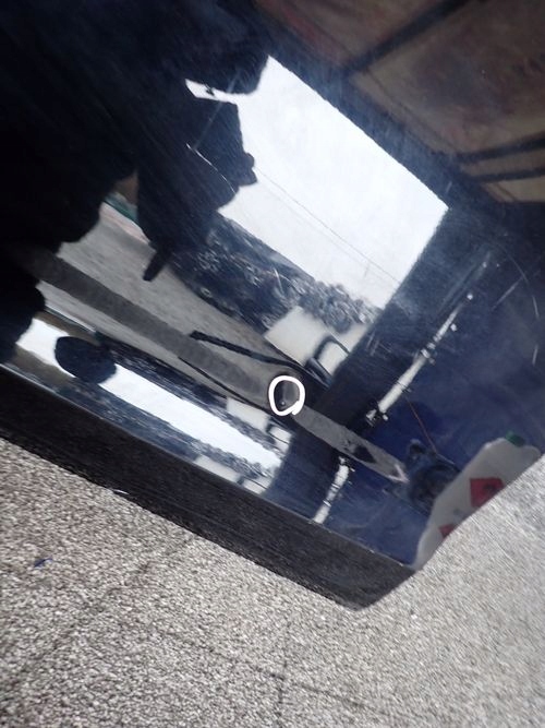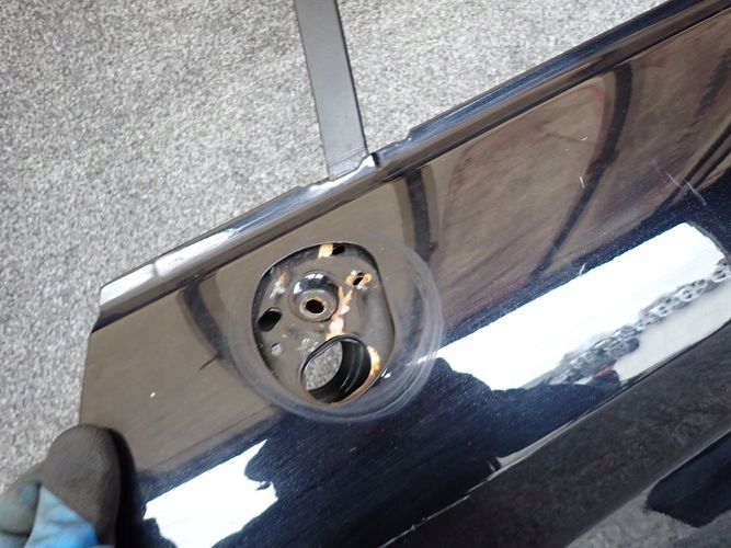 La porte est endommagée à l'endroit marqué