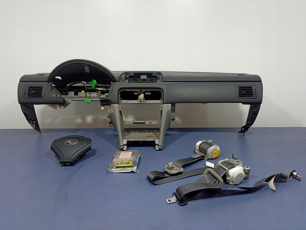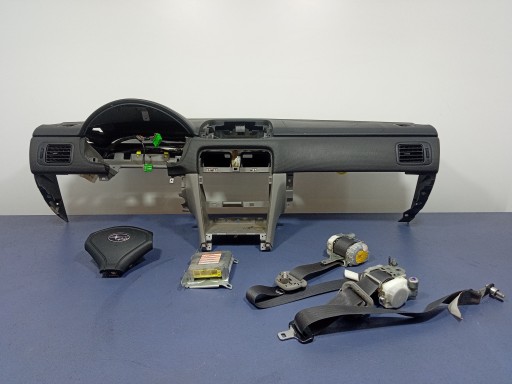 Description : ensemble, tableau de bord, airbag airbag conducteur, airbag passager, ceintures de sécurité avant 7M7820-P, 7M8820-P, module contrôleur d'airbag 98221SA140, traces d'utilisation visibles, - qualité B && FORESTER II SG 02-08 CONSOLE DE CONSOLE OREILLERS SET CEINTURES EU