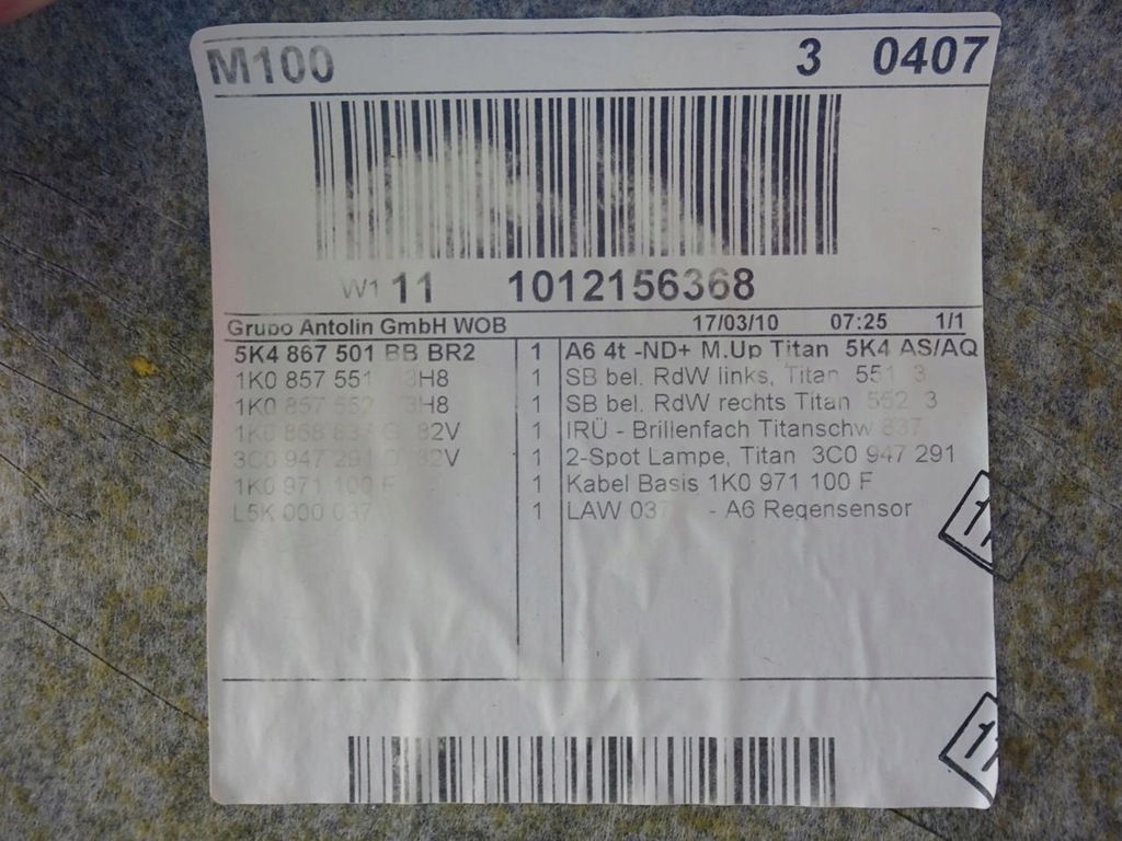 | Numéro de pièce | 5K4867501 VW GOLF VI HB HEADLINING |