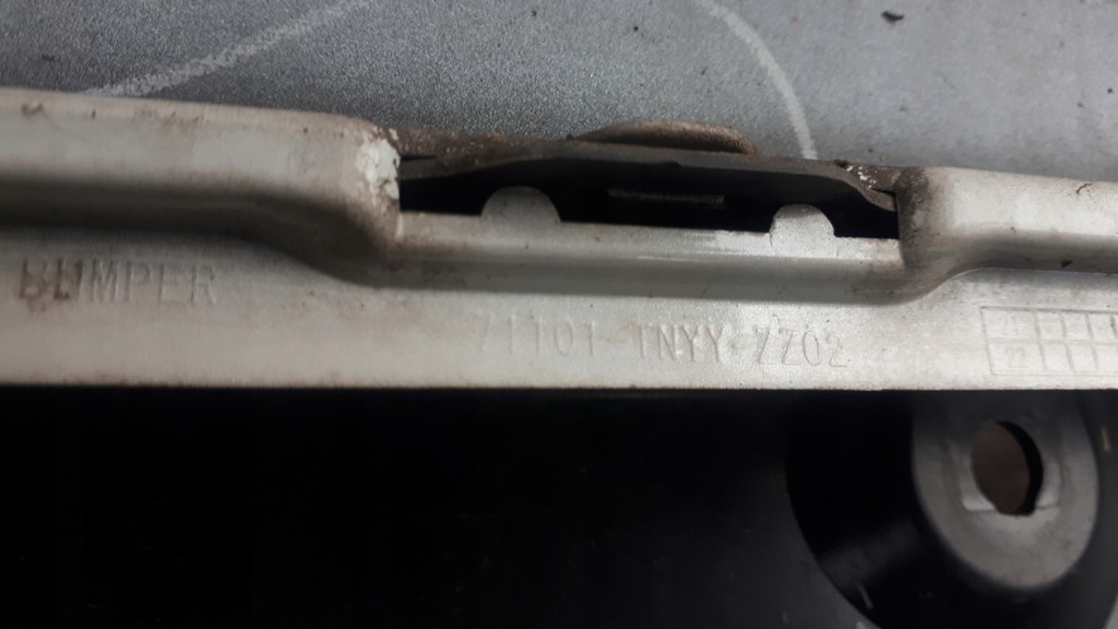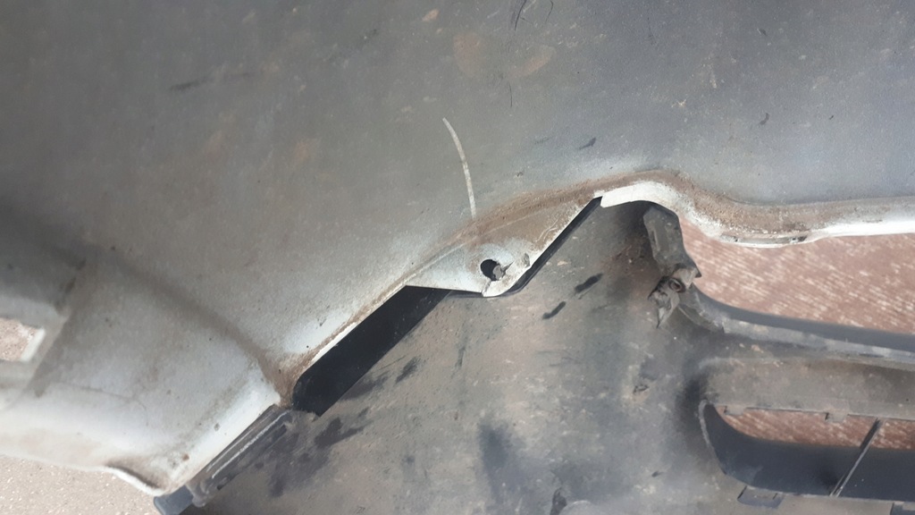 Prix par pare-chocs. La partie haute est en très bon état, 1 fixation est fissurée, voir photo ci-dessous. La partie inférieure est rayée.