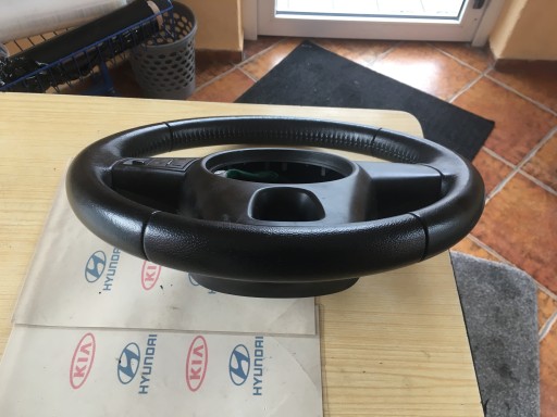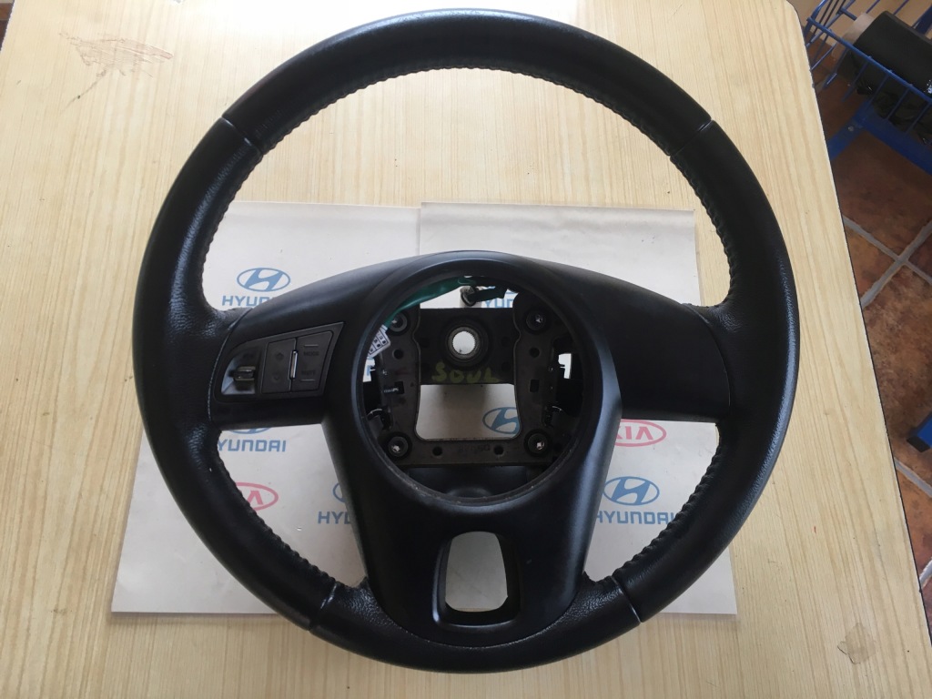 VOLANT EN CUIR POUR KIA SOUL I, FABRIQUÉ 2008-. ÉTAT COMME INDIQUÉ SUR LES PHOTOS, FONCTIONNANT.