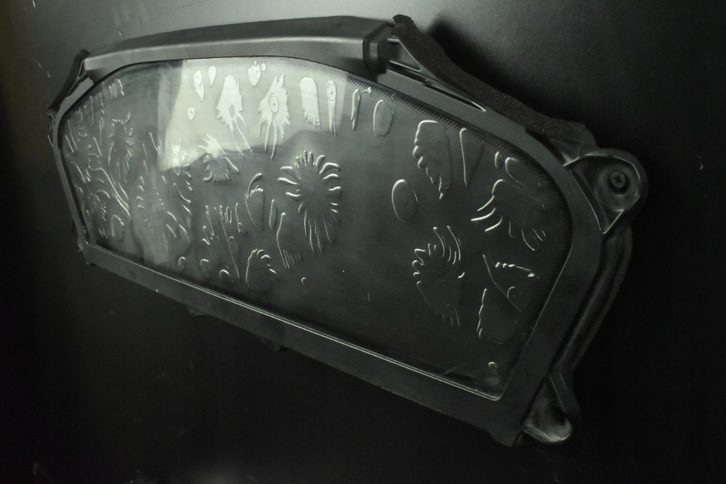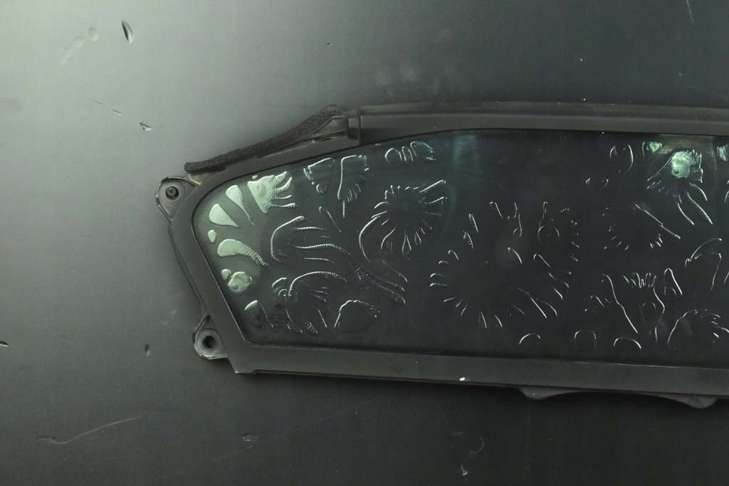 REMARQUES : LE VERRE EST ENDOMMAGÉ, SÉPARÉ, LES MOTIFS VISIBLES SUR LE VERRE SONT DES BULLES D'AIR, LE VERRE PROVIENT D'UNE VOITURE APRÈS UN INCENDIE PETIT.