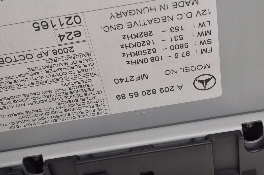 NOM RADIO N° DE SÉRIE A2098206589 MARQUE MERCEDES MODÈLE CLASSE CLK W209 MOTEUR CLK 200 KOMPRESSOR 1.8 16V 184KM CARROSSERIE Coupé NOMBRE DE PORTES SOUS-MODÈLES CAPACITÉ DU MOTEUR 1.8 TYPE DE TRANSMISSION Automatique TYPE DE CARBURANT Essence CODE SIL NIKA ANNÉE DE PRODUCTION 2008 ANNÉES DE PRODUCTION 2006/10 - 2009/05 CODE COULEUR C775 COULEUR ID de la PIÈCE: ID: 315239