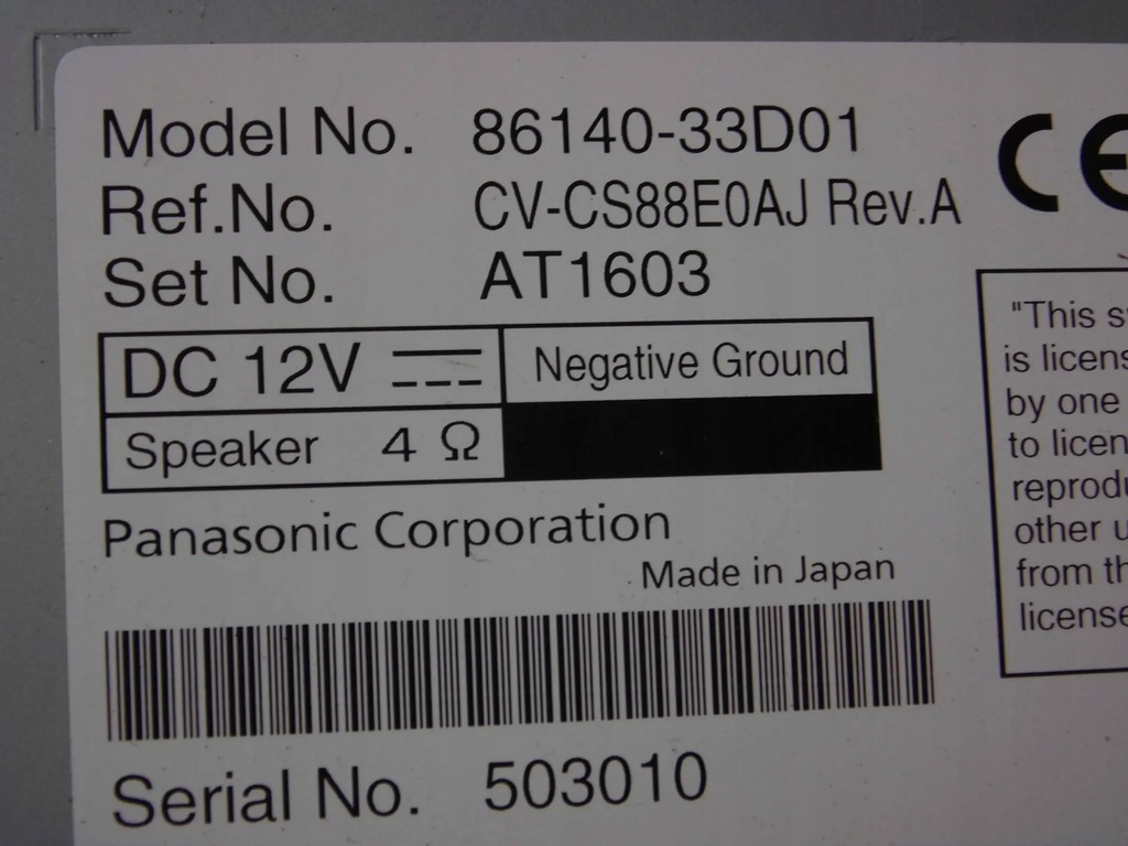 | Numéro de pièce | 86140-33D01 |