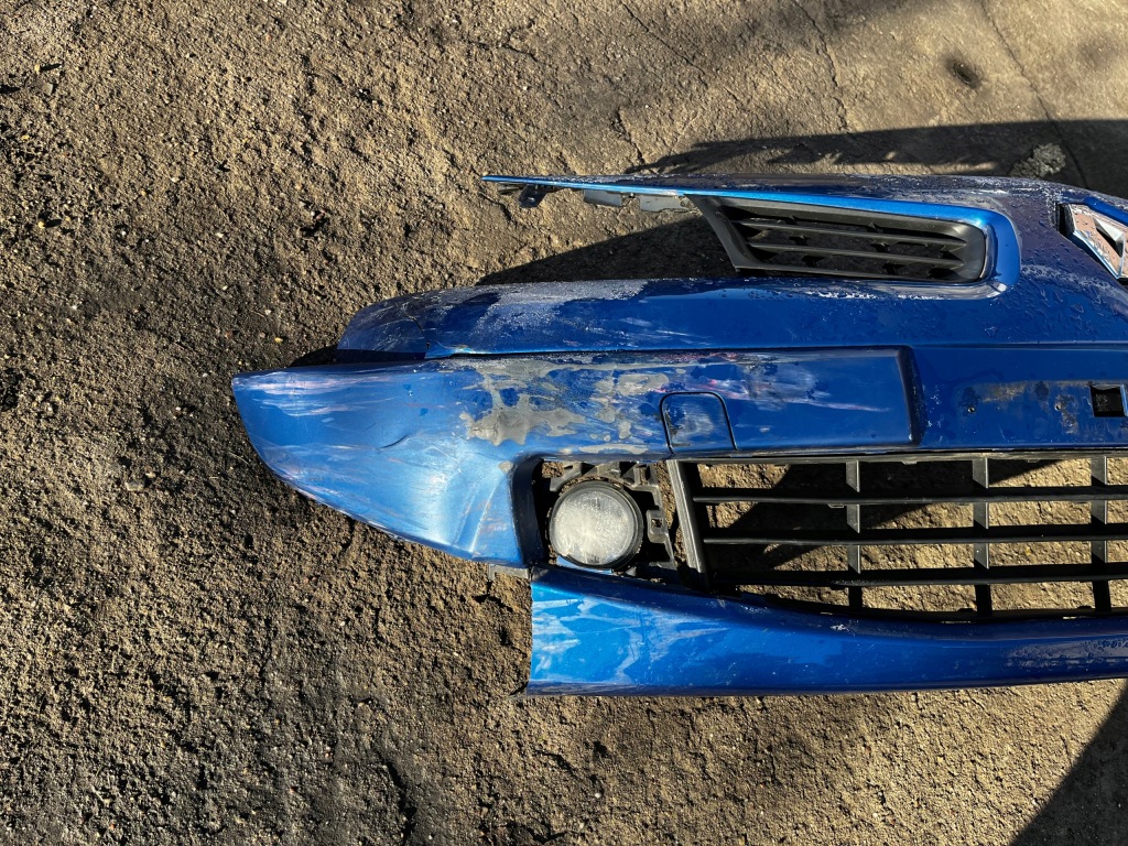 Le pare-chocs est endommagé sur le côté droit, les grilles et baguettes sont pour la plupart intactes.