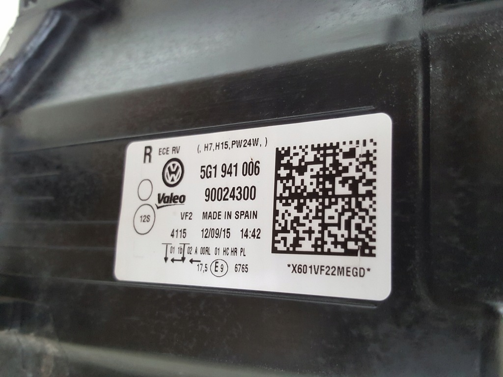VW GOLF VII 5G1941006 LAMPE AVANT DROITE ORIGINALE. LÉGÈREMENT ENDOMMAGÉ À UN ENDROIT VISIBLE - MANQUE UNE FIXATION.