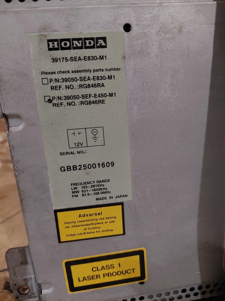 | Numéro de pièce | RADIO NAVIGATION 39050-SEF-E450-M1, 39540-SEA-E110-M1 HONDA ACCORD VII LIFT |