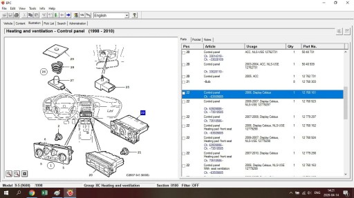 Saab 9-5 2006 Panneaux de commande, commutateurs