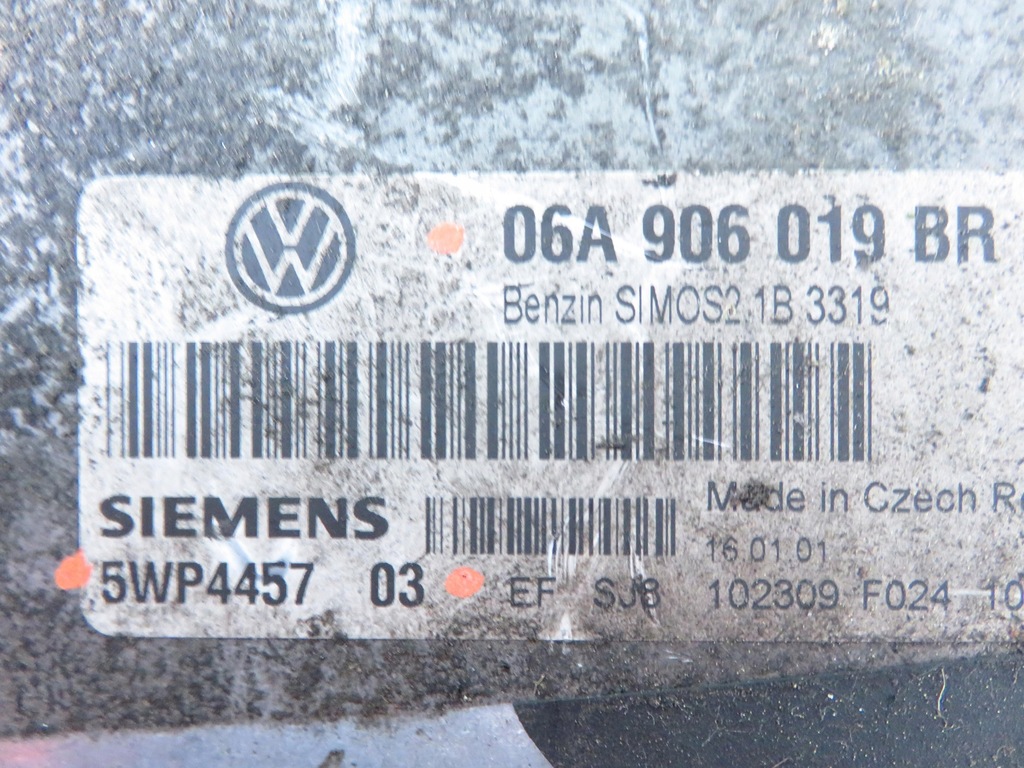 CONTROLEUR MOTEUR ASEATTOLEDO II (1M2) 20011.6 - AKLBENZYNE SEDANNombre de portes : 4Boîte de vitesses : MANUELLE 5 VITESSES Numéro de série : 06A906019BR ; 5WP445703 ID de pièce : M965003