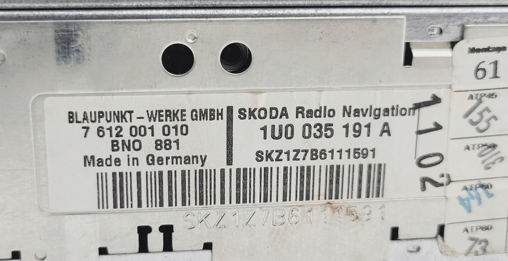 SKODA SUPERB I RADIO NAVIGATION NAVI 1U0035191A MFD 1 AVEC CODE CODE