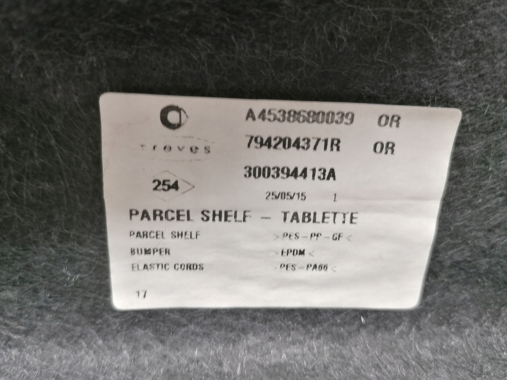 TABLETTE DE COFFRE ARRIÈRE SMART 453 ORIGINE 2014-