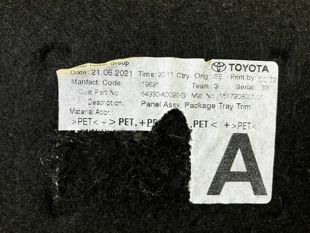 | Numéro de pièce | ÉTAGÈRE SUPÉRIEURE ARRIÈRE DE COFFRE YARIS IV |