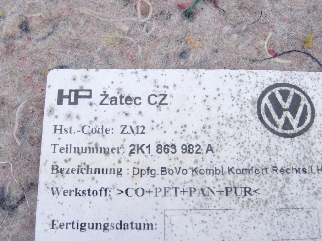 | Numéro de catalogue de pièces | TAPIS TAPIS AVANT AVANT DROIT VW CADDY III 3 2K0 03-10 2K1863982A |